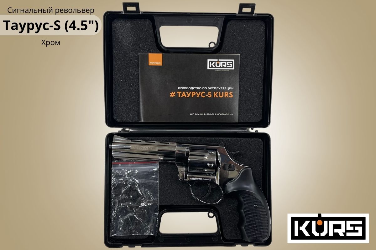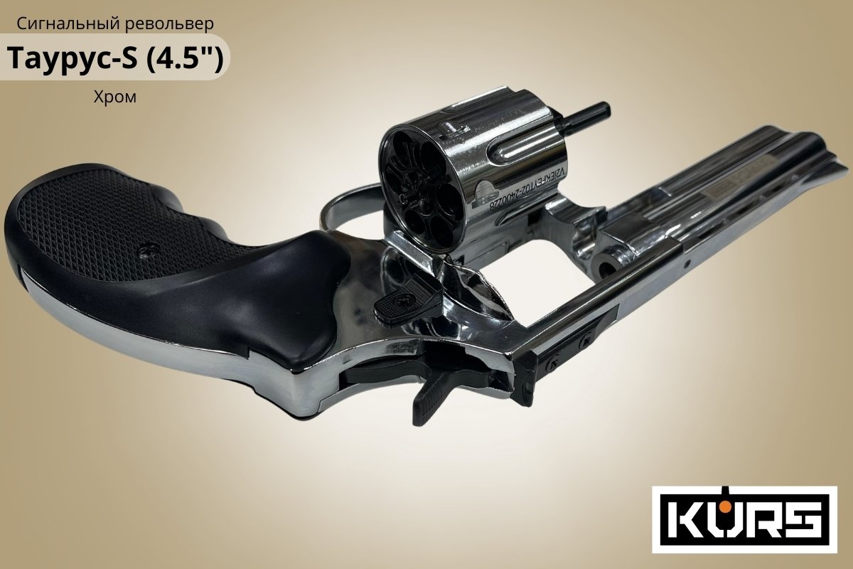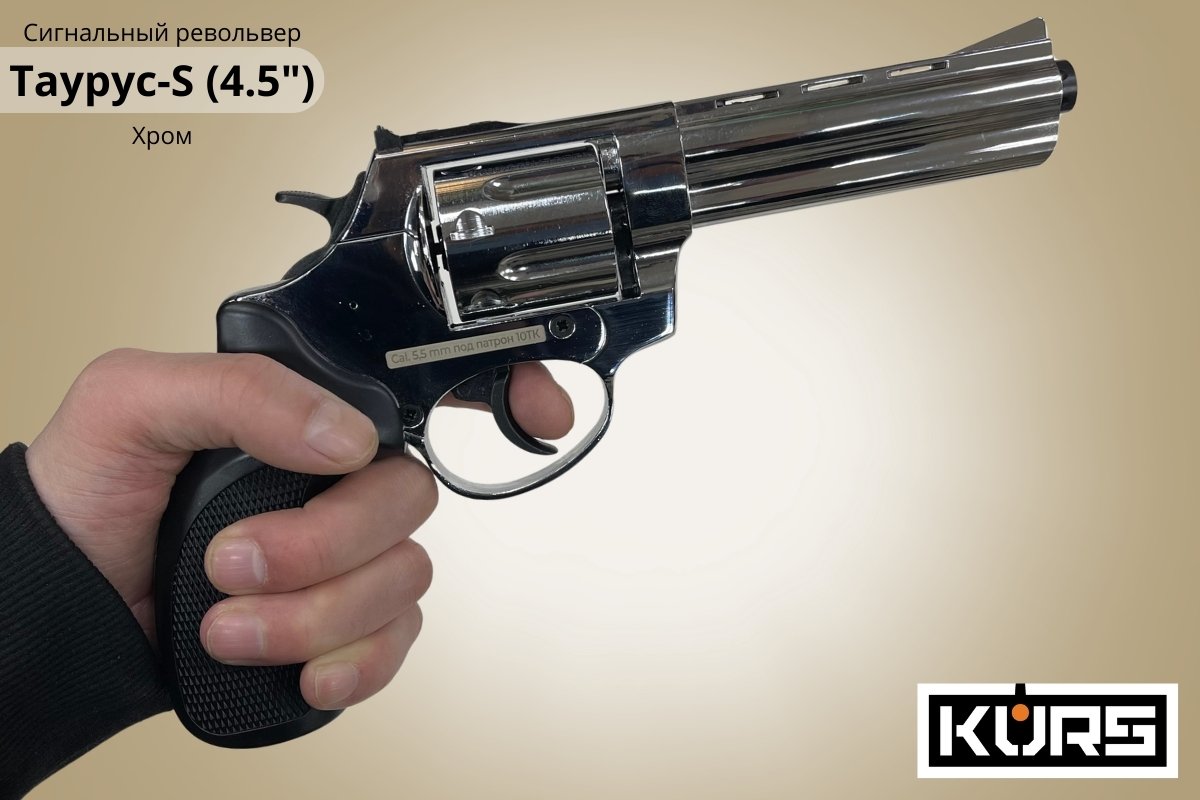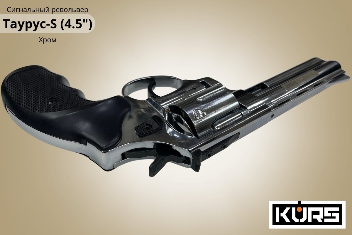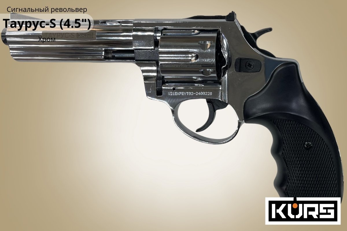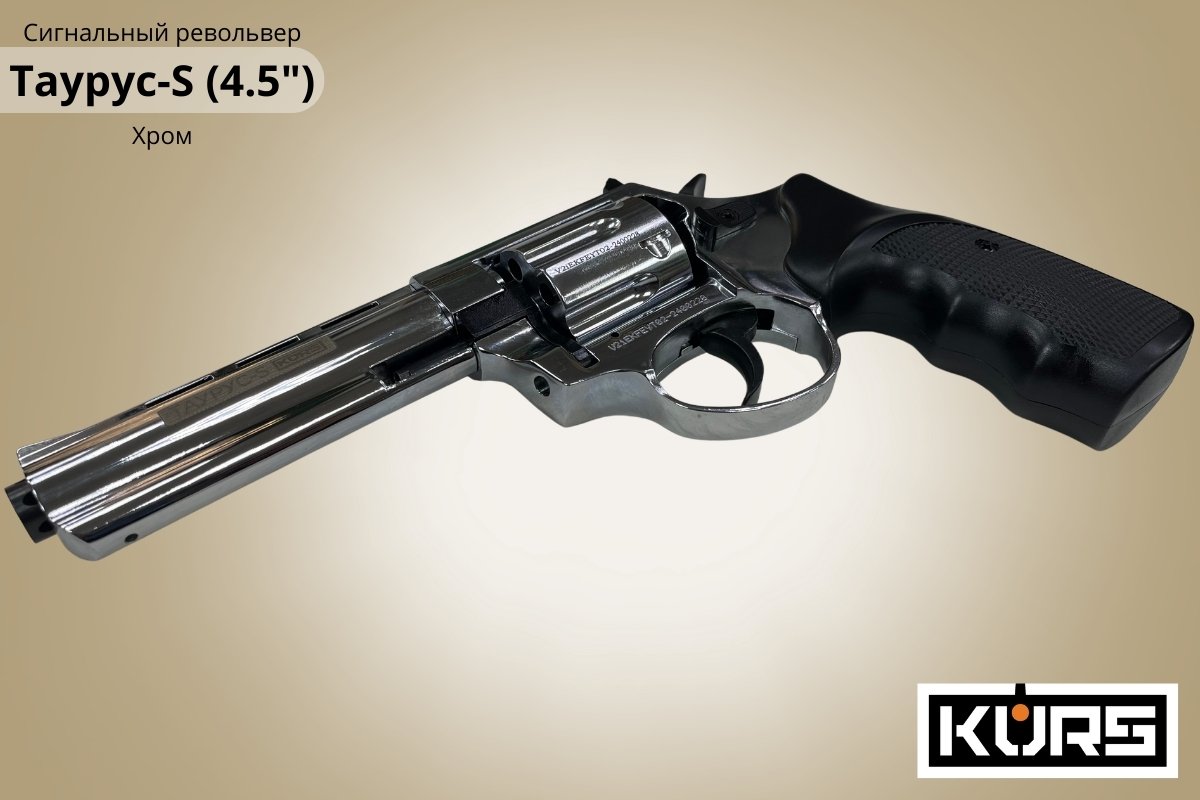 Сигнальный револьвер Таурус-S (Размер 4.5) Хром - подойдет для отпугивания живот...